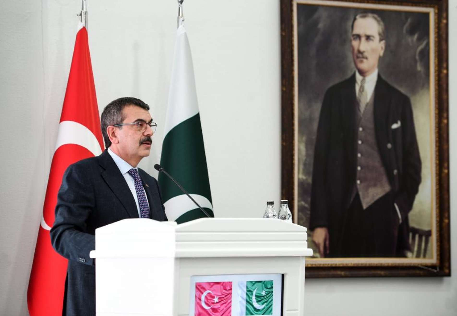 Pakistan’ın Ankara Büyükelçisi Yusuf Cüneyd’in konuşmasında, Mustafa Kemal Atatürk ile Muhammed Ali Cinnah’ı “Müslüman dünyasının özgürlük ve haysiyet duruşunun vücut bulmuş hâli” olarak tanımladığını aktaran Tekin, şunları kaydetti: