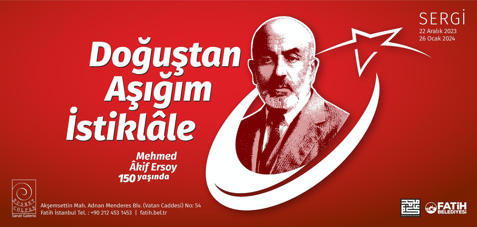 Fatih Belediyesi tarafından, ünlü şair Mehmed Âkif Ersoy’un doğumunun 150. yılı anısına özel bir sergi düzenlenecek. “Doğuştan Aşığım İstiklâle” adlı sergi, İstiklâl Marşı’nın yazarı olan Mehmet Âkif’in hayatını orijinal fotoğraflarla anlatarak, özel eşyalarını, mektuplarını ve notlarını sergileyecek.